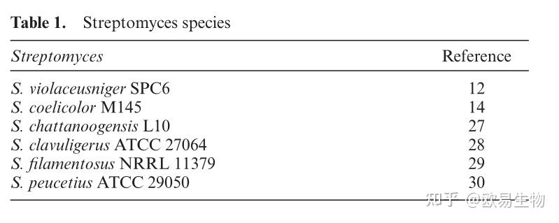 (1)本研究中使用的链霉菌属物种和菌株列于表 1。