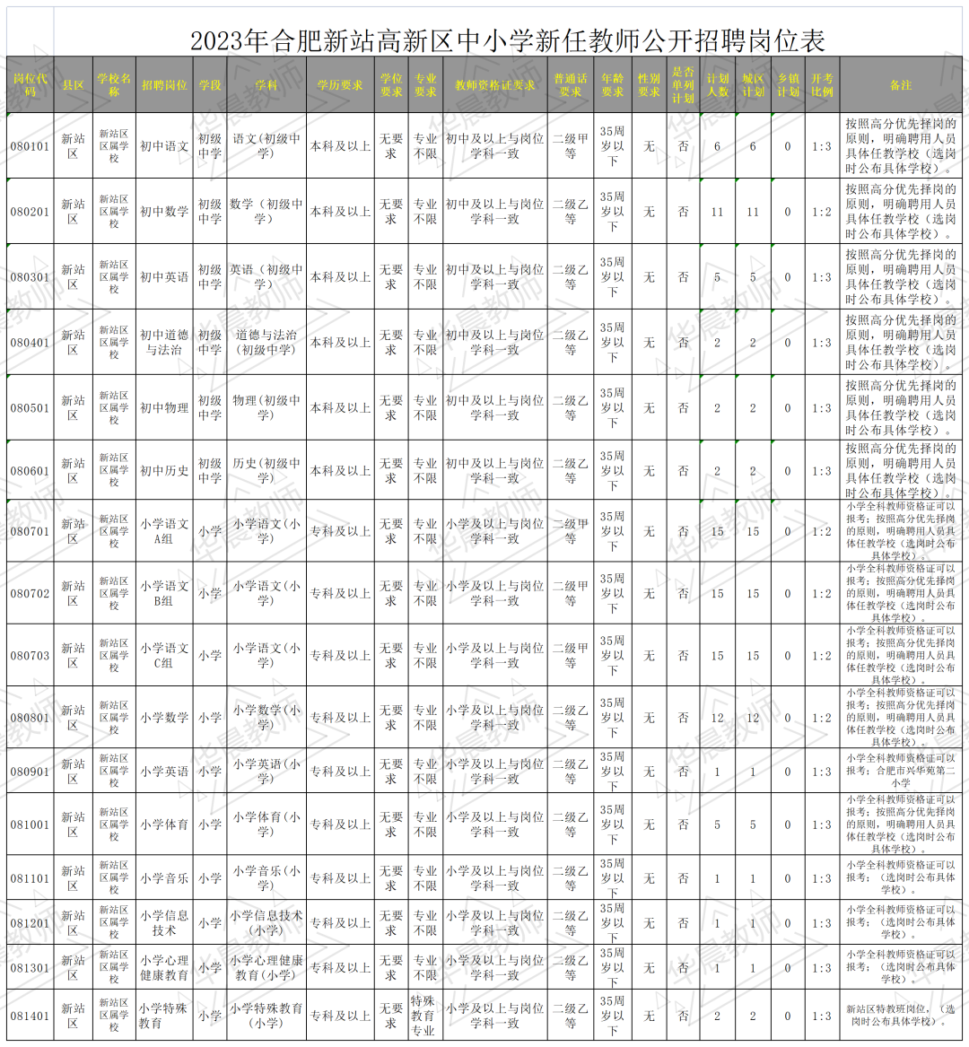 统考!2023年合肥市中小学新任教师公开招聘1427人公告 ...