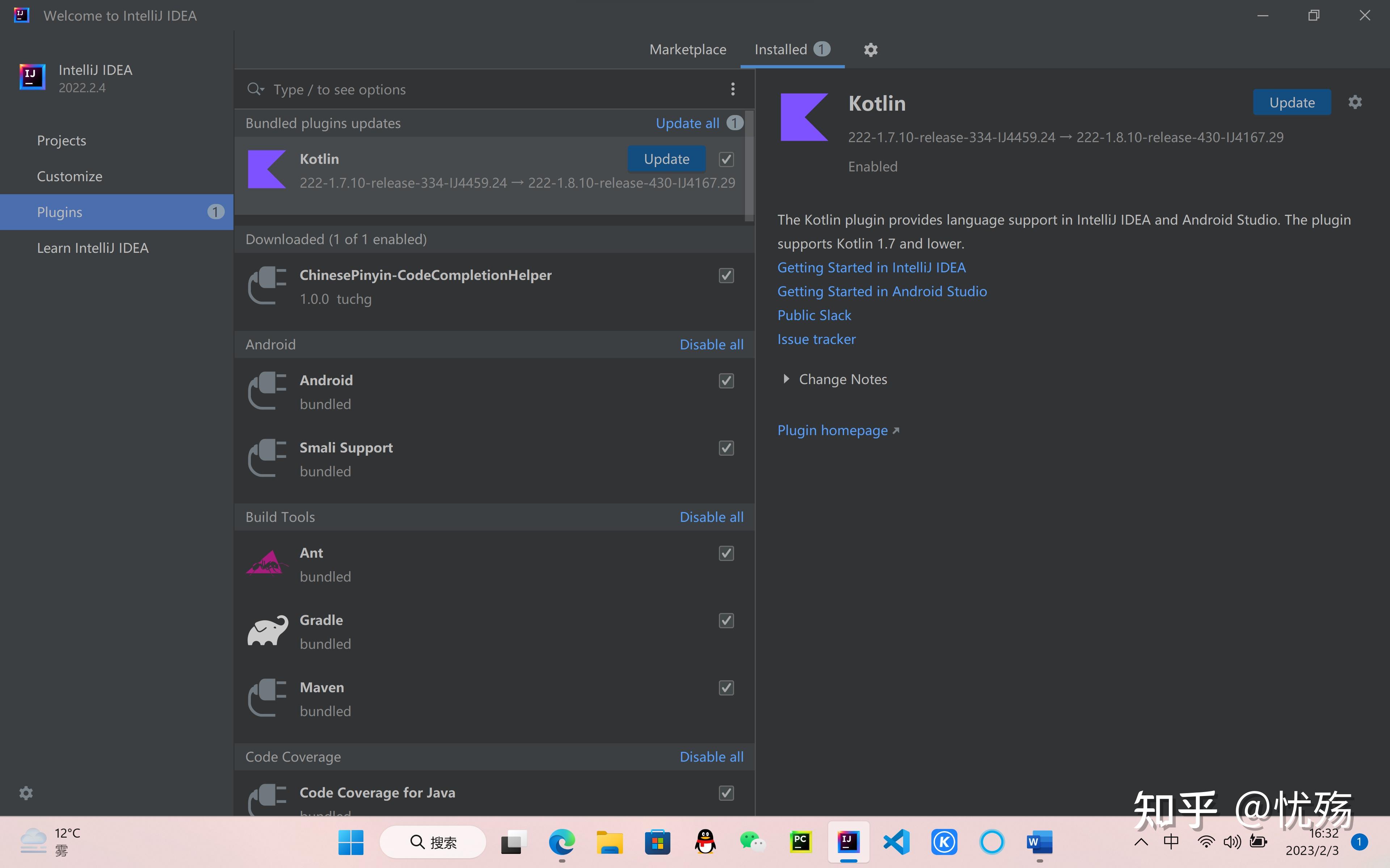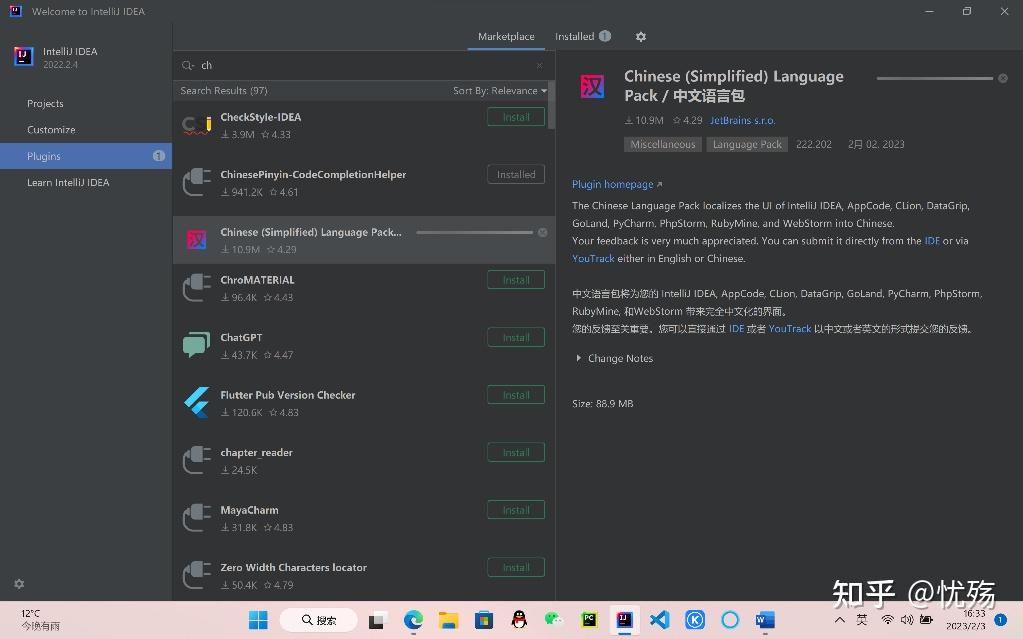 下载安装完成后即可打开,打开后为英文,想更改为中文,在idea左侧找到plugins附图