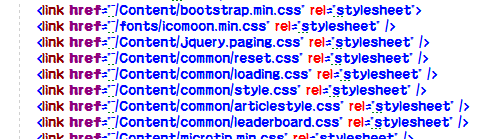 <environment names="Development">            <link href="~/Content/bootstrap.min.css" rel="stylesheet">                    <link href="~/fonts/icomoon.min.css" rel="stylesheet" />                    <link href="~/Content/jquery.paging.css" rel="stylesheet" />                    <link href="~/Content/common/reset.css" rel="stylesheet" />                    <link href="~/Content/common/loading.css" rel="stylesheet" />                    <link href="~/Content/common/style.css" rel="stylesheet" />                    <link href="~/Content/common/articlestyle.css" rel="stylesheet" />                    <link href="~/Content/common/leaderboard.css" rel="stylesheet" />                    <link href="~/Content/microtip.min.css" rel="stylesheet" />                    <link href="~/Assets/breadcrumb/style.css" rel="stylesheet" />                    <link href="~/Assets/nav/css/style.css" rel="stylesheet" />                    <link href="~/Assets/tippy/tippy.css" rel="stylesheet" />                    <script src="~/Scripts/bootstrap.min.js"></script>                    <script src="~/Scripts/bootstrap-suggest.min.js"></script>                    <script src="~/Scripts/jquery.query.js"></script>                    <script src="~/Scripts/jquery.paging.js"></script>                    <script src="~/Scripts/ripplet.js"></script>                    <script src="~/Scripts/global/scripts.js"></script>                    <script src="~/Assets/tippy/tippy.js"></script>                    <script src="~/Assets/newsbox/jquery.bootstrap.newsbox.js"></script>                    <script src="~/Assets/tagcloud/js/tagcloud.js"></script>                    <script src="~/Assets/scrolltop/js/scrolltop.js"></script>                    <script src="~/Assets/nav/js/main.js"></script>        </environment>        <environment names="Stage,Production">            @await Styles.RenderAsync("~/bundles/main.css")                    @await Scripts.RenderAsync("~/bundles/main.js")        </environment>通过查看本站的源码可以发现,已经合并成了这样的两个文件: