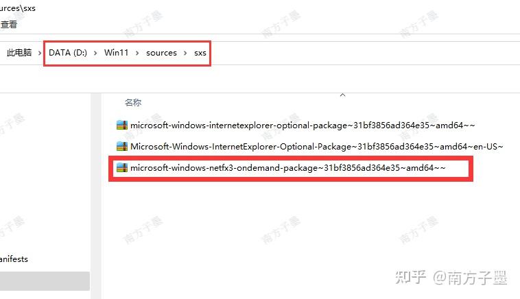 <hr/>准备 .NET Framework 3.5安装需要的文件,其实根本不需要上网下载,不知道为什么微软安装时还是会去网上下载,在安装光盘镜像的sources\sxs文件夹里就有,我把这些文件释放在了D:\Win11\sources\sxs下载,