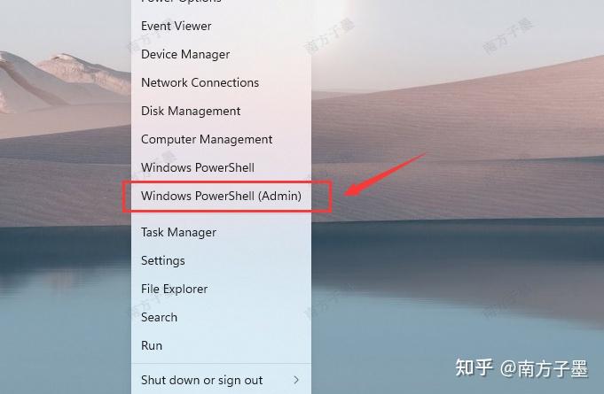 在修改组策略设置后,必须对这一策略进行更新,才能起作用,通过【开始】菜单右键中的【Windows Powershell(Admin)】