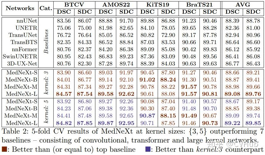 因此,最近有许多工作都在探索大卷积核的魔力,据笔者有限的知识储备,目前看到过最高的极限是扩展到61 x 61,有兴趣的读者可以自行去翻阅『CVHub』。讨论回ConvNeXt本身,其卷积核的极限只到7 x 7,根据原著所述再往上增大就“饱和”了。所以,针对医学图像分割这类本身数据就很稀缺的任务来说,如何才能有效的应用和发挥该架构的优势呢?下面看看作者是如何做的。