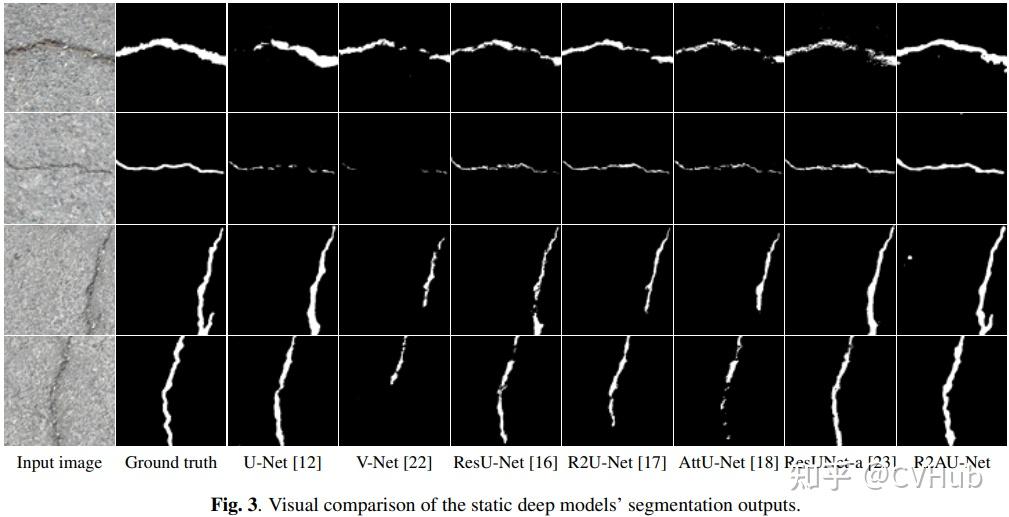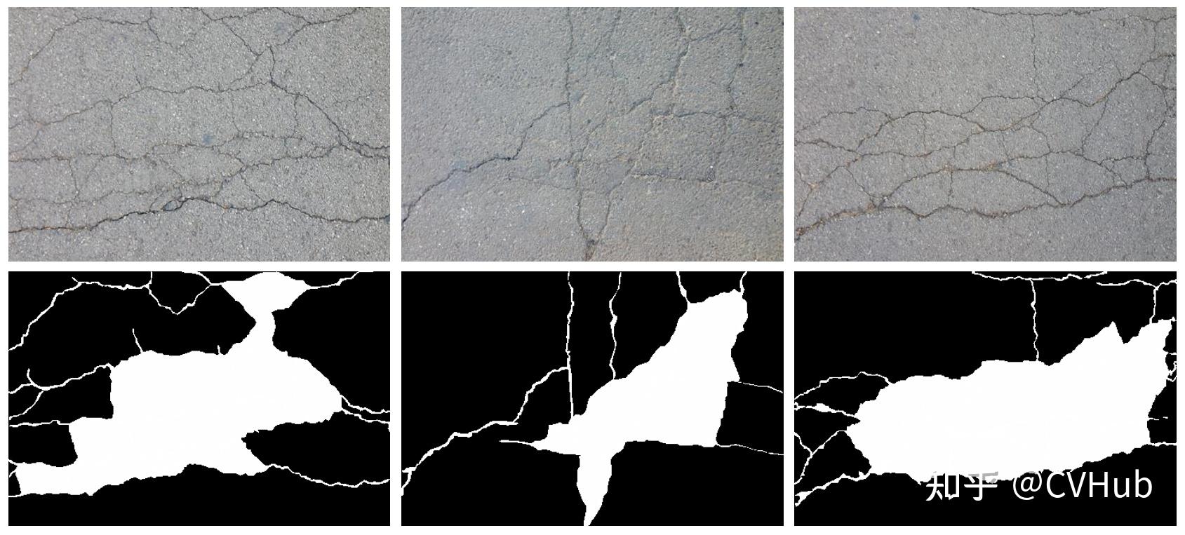 基于深度学习的方法大都是基于卷积神经网络或者Transformer等架构进行端到端的特征提取。以道路裂缝分割为例,可以建模为一个二值分割网络,以原图作为输入,掩码图作为输出,通过训练自动学习出最优的参数。