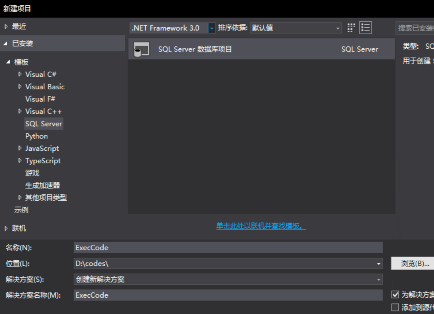 2、创建一个新的SQL Server数据库项目