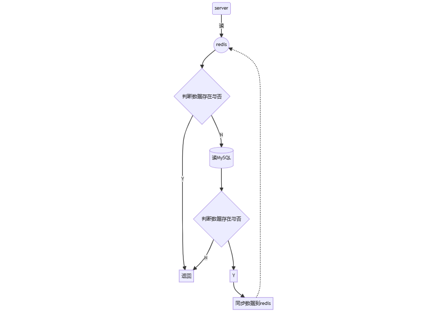 读策略:先读缓存,若缓存有,直接返回;若缓存没有,读mysql;若 mysql 有,同步到缓存,并返回;若 mysql 没有,则返回没有。