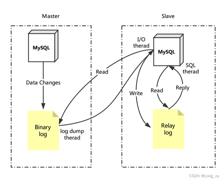2. 从库请求读取 binlog,通过 io-thread 写入从库本地 relay log(中继日志)。