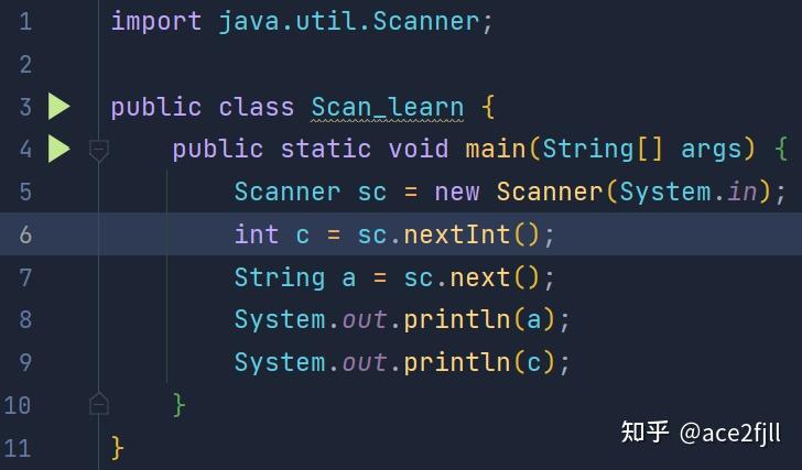 - Scanner 实例化对象 sc 调用输入 nextInt(),返回键盘输入的内容,需要定义对应的变量赋值