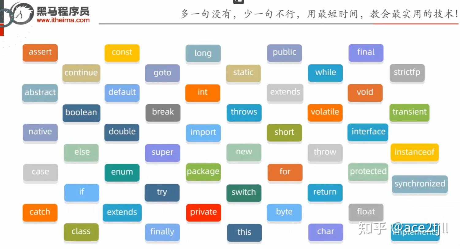 - 关键字:被 Java 赋予特殊含义的英文单词