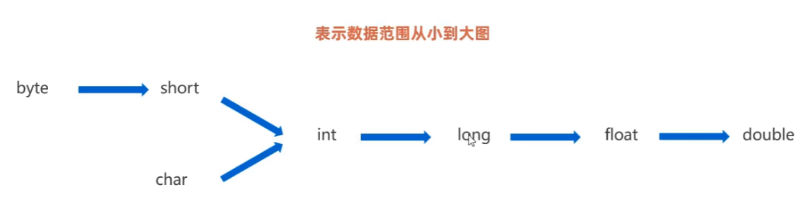 - 取值范围小的数据/变量赋值给取值范围大的变量(考虑其字节数)