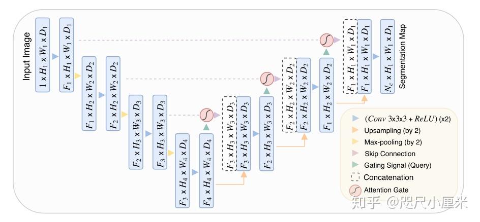 CNN会根据一层一层的局部信息来提取高维图像的表示,最终在高维空间的离散像素会具有语义信息和巨大的感受野。基于U-Net构建的Attention U-Net,粗粒度的特征图会捕获上下文信息,并突出显示前景对象的类别和位置。随后,通过skip connections合并以多个比例提取的特征图,以合并粗粒度和细粒度的密集预测。
