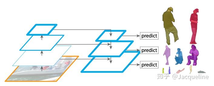 虽然之前也有算法采用了多尺度融合的方式,但是一般都是在特征融合之后再做预测,而本文则是在不同的特征层都单独进行预测。