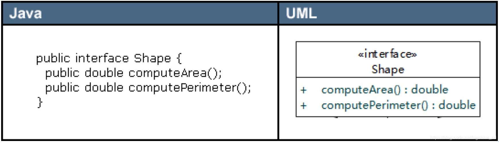 接口在类图中也是用矩形框表示,但是与类的表示法不同的是,接口在类图中的第一层顶端用构造型 <<interface>>表示,下面是接口的名字,第二层是方法,如图3所示。此外,接口还有另一种表示法,俗称棒棒糖表示法,就是类上面的一根棒棒糖(圆圈+实线)。圆圈旁为接口名称,接口方法在实现类中出现。