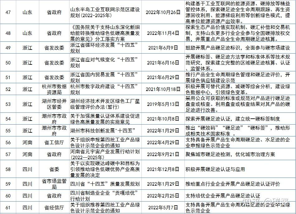 2023年3月,山东省印发了碳足迹工作方案—《山东省产品碳足迹评价工作方案(2023—2025年)》,要求到2025年,基本完成600家重点企业产品碳足迹核算。