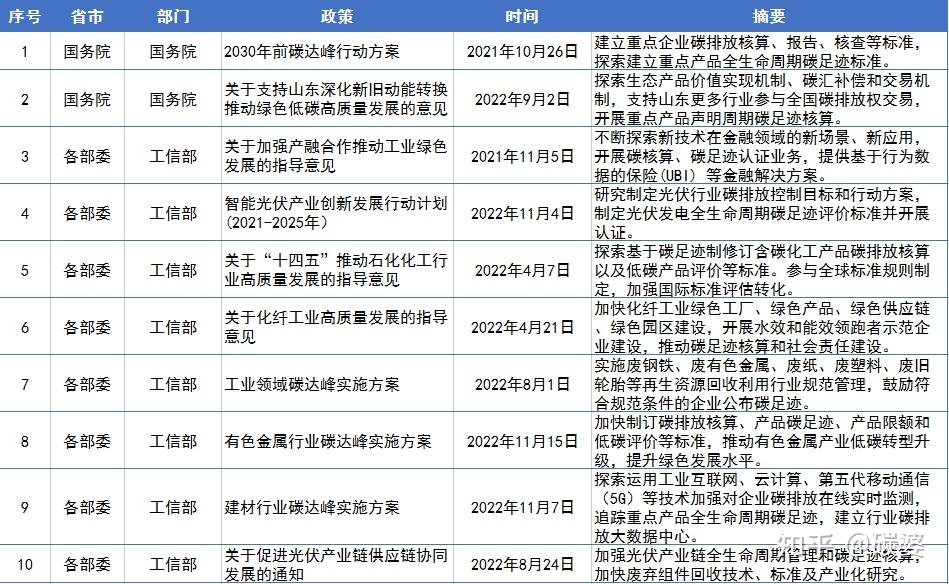 2022年10月,生态环境部表示:将建立健全重点产品碳排放核算的方法,研究产品碳排放核算通则和重点行业产品碳排放的核算细则。