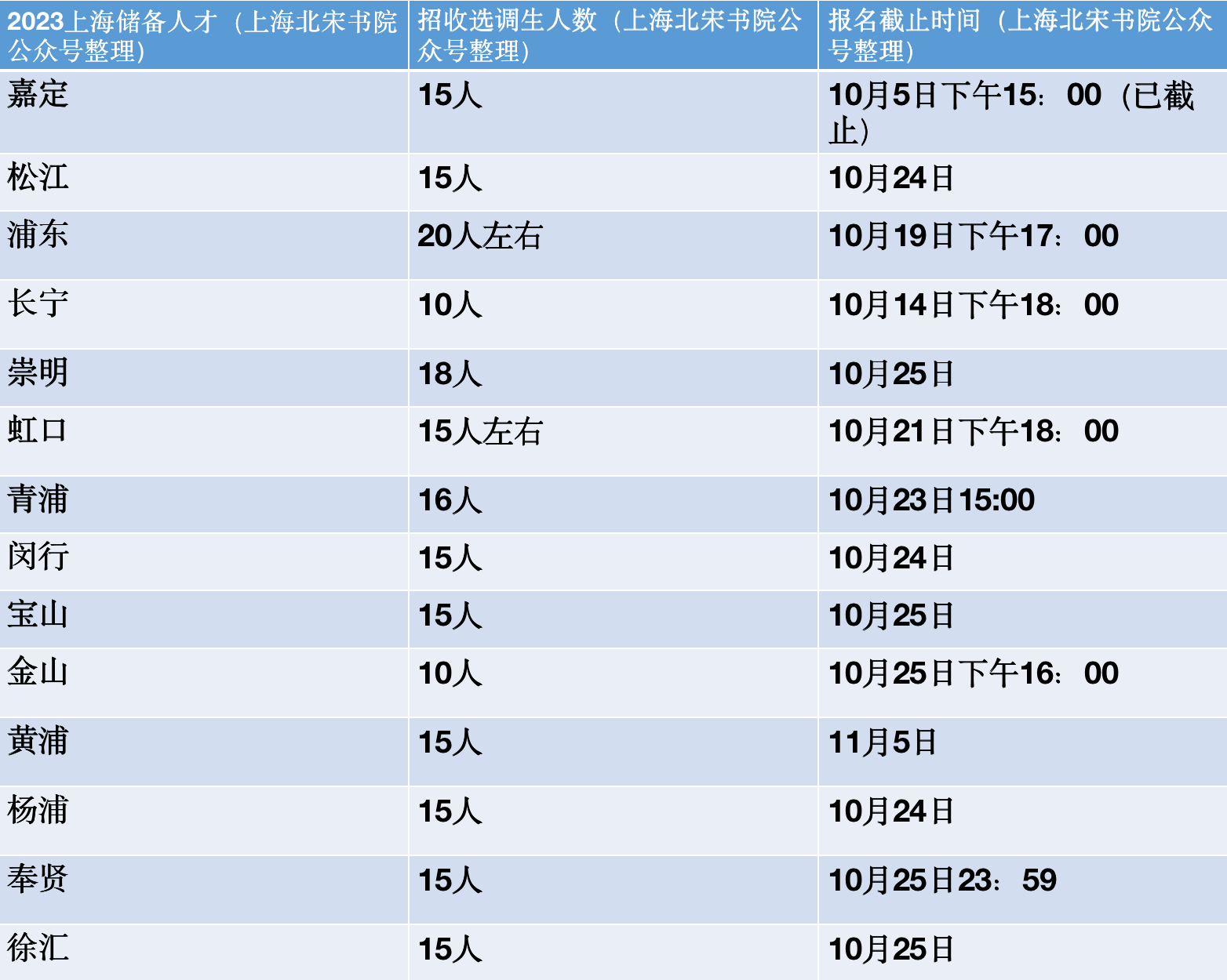 2023上海储备人才(上海北宋书院公众号整理) | 招收选调生人数(上海北宋书院公众号整理) | 报名截止时间(上海北宋书院公众号整理) | 报名链接 |