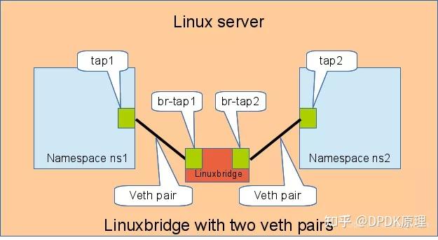 Linux Bridge 相当于一台交换机,可以中转两个 namespace 的流量,我们看看 veth-pair 在其中扮演什么角色。